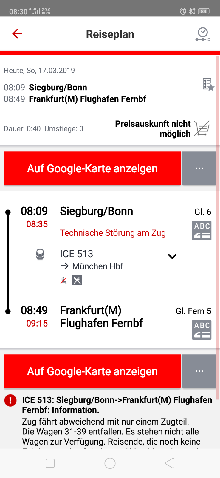 Diese Zusätzliche Freizeit gab uns Gelegenheit zu diskutieren ob diese „Technische Störung“ wohl ein Grund wäre sich zu Sorgen, würde der Zug Richtung Frankfurt auf bis zu 300 km/h beschleunigen. Als er schließlich hielt wussten wir, nein.