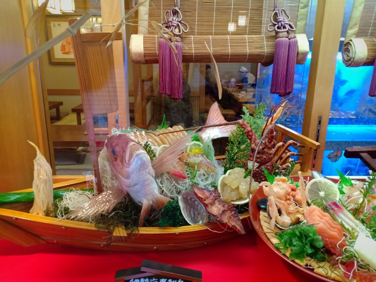 Auf der Insel gibt es viele Stände und Restaurants mit lokalen Spezialitäten auf der Straße zum Tempel.