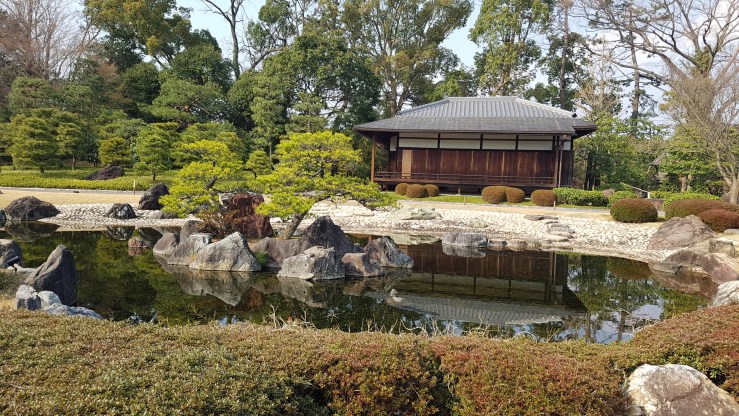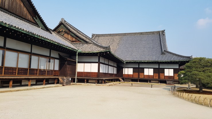 Wir erreichen Kyoto am späten Vormittag bei strahlendem Sonnenschein und nach einem kurzen Spaziergang kommen wir am ersten Punkt der Tagesordnung an: Das Schloss Nijo. Einst Sitz des Tokugawa Shogun und ehemalige kaiserliche Villa.