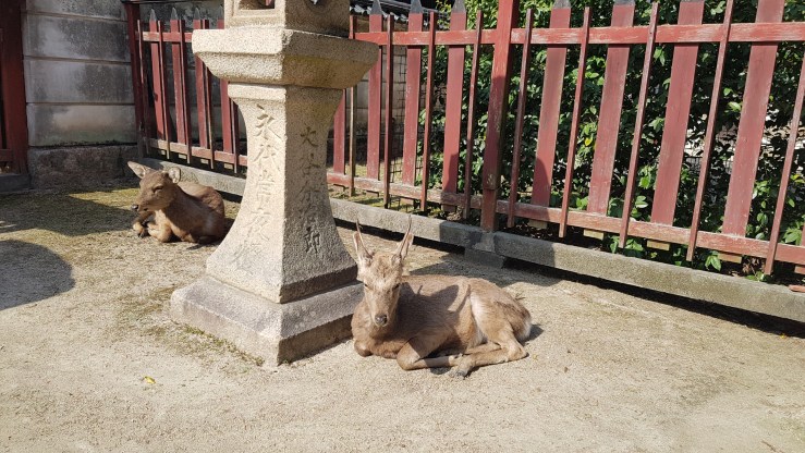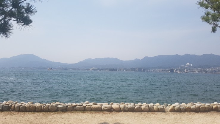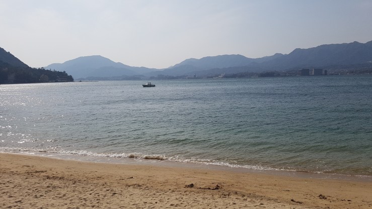 Da die Kirschblüte in Region um Osaka immer noch warten auf sich lässt, dachten wir, dann fahren wir ihr halt entgegen. Und zwar ins 350km entfernte Miyajimaguchi. In 90 Minuten mit dem Sakura-Shinkansen. Von dort geht es mit der Fähre zur Insel Miyajima.