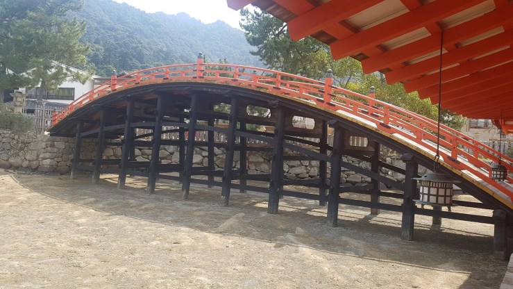 Für 300¥ darf man den Schrein betreten und durch die Korridore über dem Wasser laufen. Wir waren mittags passend zur Flut da für schöne Bilder vom Torii. Bei Ebbe kann man bis zum Torii laufen und es aus nächster Nähe sehen.