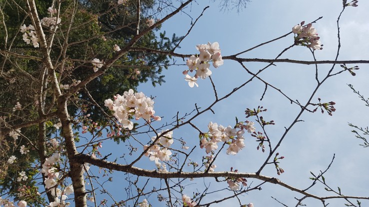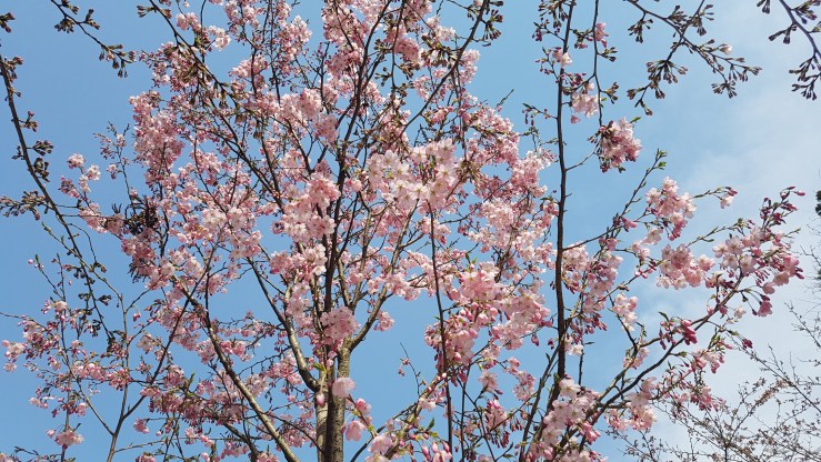 In einem kleinen Park konnten wir auch endlich erste blühende Kirschbäume sehen.