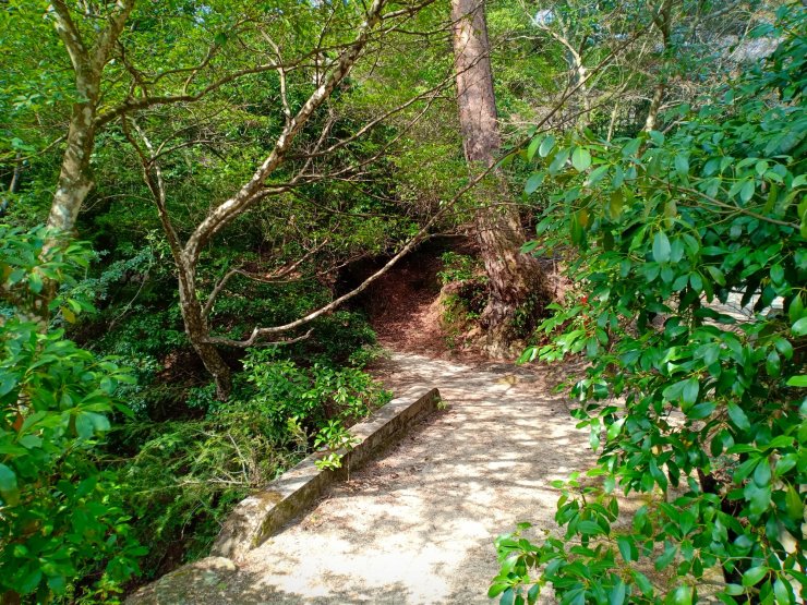 Am oberen Ende der Kirschbäume beginnt der Abstieg Richtung Strand durch die verschlungenen Pfade des „Nature Walk“