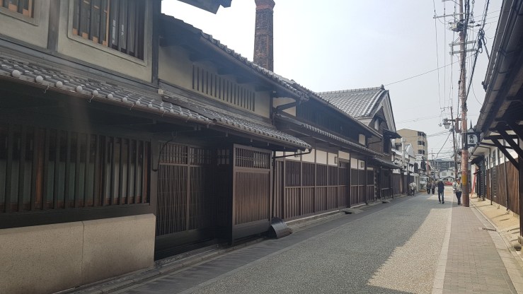 Ein paar Stationen weiter sind wir fast die einzigen Touristen und navigieren uns durch die Shotengai in Richtung Sake-Distrikt. Schon bald sehen wir die ersten Gebäude der Sake-Brauereien.