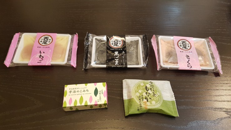 Von den unzähligen Wagashi-Kreationen wollten wir natürlich auch probieren und sind nach etwas Recherche auch auf kleine Packungen gestoßen. Dank der Omiyage-Kultur gibt es sonst leider fast nur Geschenkboxen ab 20 Stück, was uns zum testen dann doch etwas zu viel ist 😅