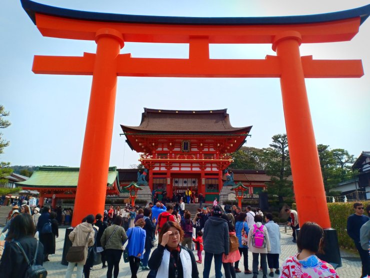 Und weil wir gerade da waren, schauten wir uns kurz, sehr kurz, den berühmten Inari-Schrein mit seinen hunderten roten Torii an. Der Schrein ist eigentlich wunderschön, doch leider eins der schlimmsten Opfer des Massentourismus.