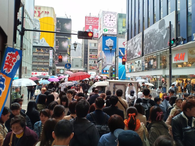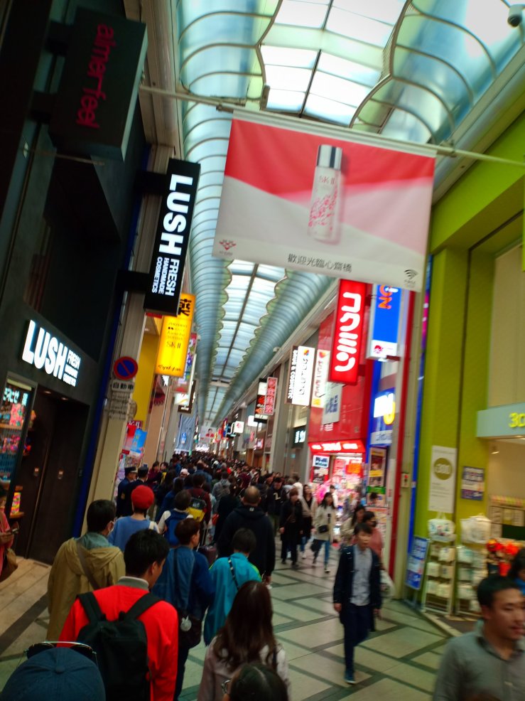Dank des kühleren Wetters in der Kansai-Region ist die Kirschblüte hier etwas verspätet und es regnet immer mal wieder. An zwei sehr verregneten Tagen beschlossen wir in der Stadt zu bleiben, mal auszuschlafen und die überdachten Einkaufsstraßen zu besuchen. Natürlich waren wir nicht die einzigen mit der Idee und es war fast überall recht voll. Aber als Europäer mit über 1,80m ist das ok, man kann fast alle Köpfe überblicken 😁