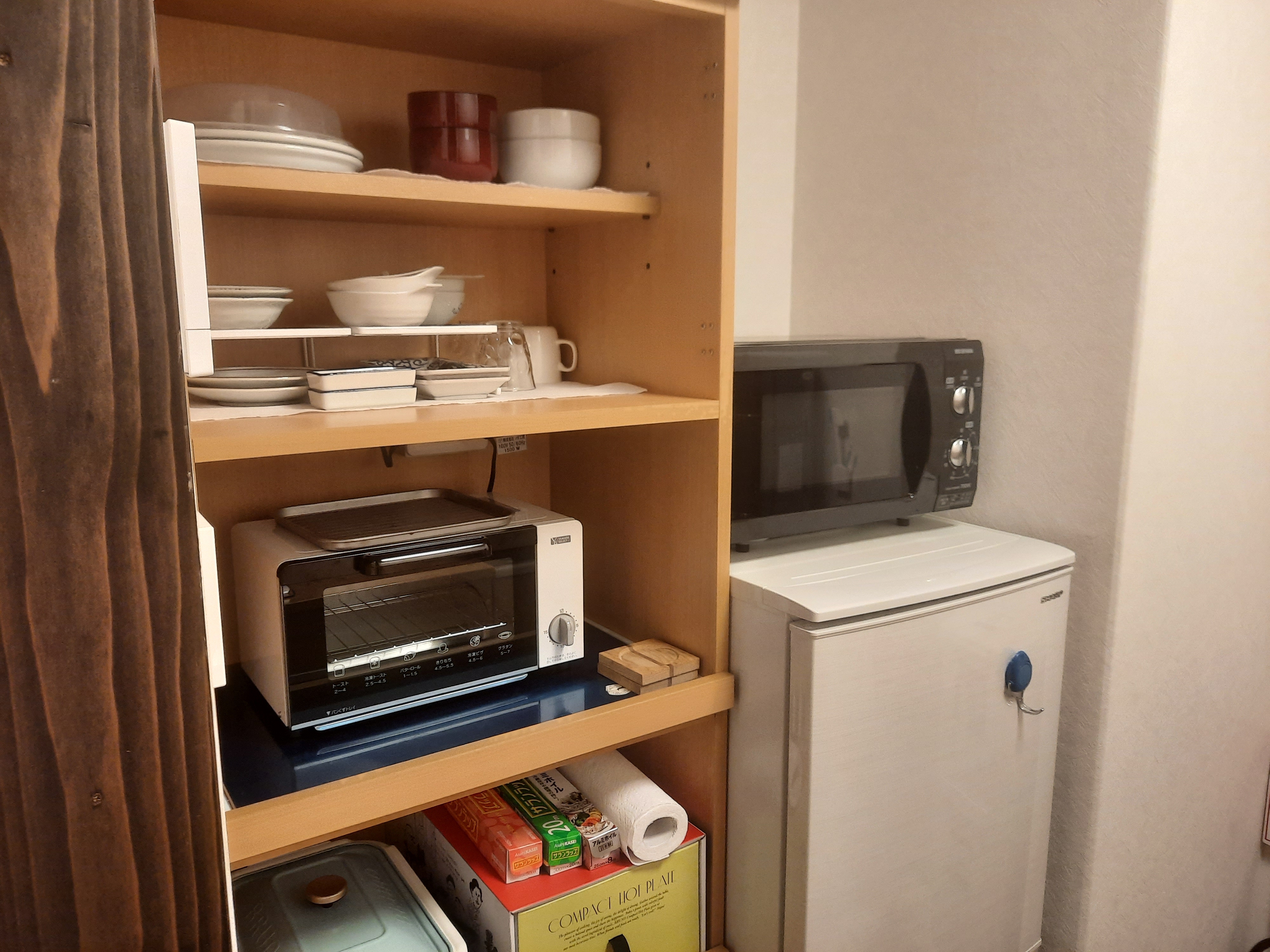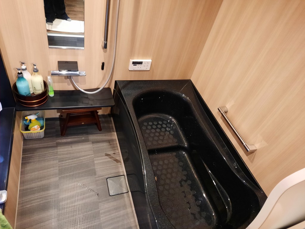 Die Wände sind dünn, Isolierung quasi nicht vorhanden, das alte Holz ist teilweise uneben und verzogen, aber auch das macht den Charme der Machiya aus. Moderne elektronische Geräte in Küche, Badezimmer und Toilette, sowie Klimaanlage, Luftreiniger und kleine Heizelemente erhöhen den Komfort. Der große Tisch im Wohnzimmer hat sogar einen Kotatsu (eingebaute Heizdecke). Immer wieder entdecken wir schöne kleine Details der Ausstattung, die zeigen wieviel Herzblut in das Haus gesteckt wurde.