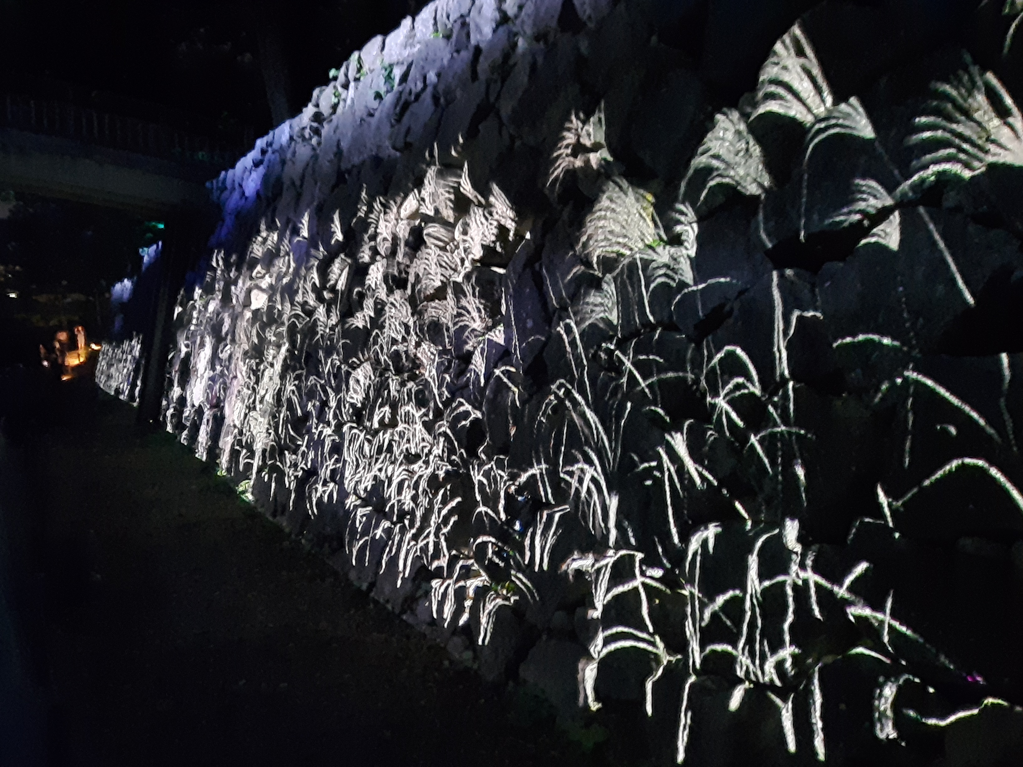 Zum Schluss kommt der Höhepunkt: Auf der Mauer der großen Lagerhalle werden verschiedene Tiere aus Blüten animiert, die auf der Mauer entlang laufen. Sobald sich ein paar Tiere überlagern, verpuffen die Blüten und die Leinwand wird leer. Danach erscheinen die Tiere erneut.