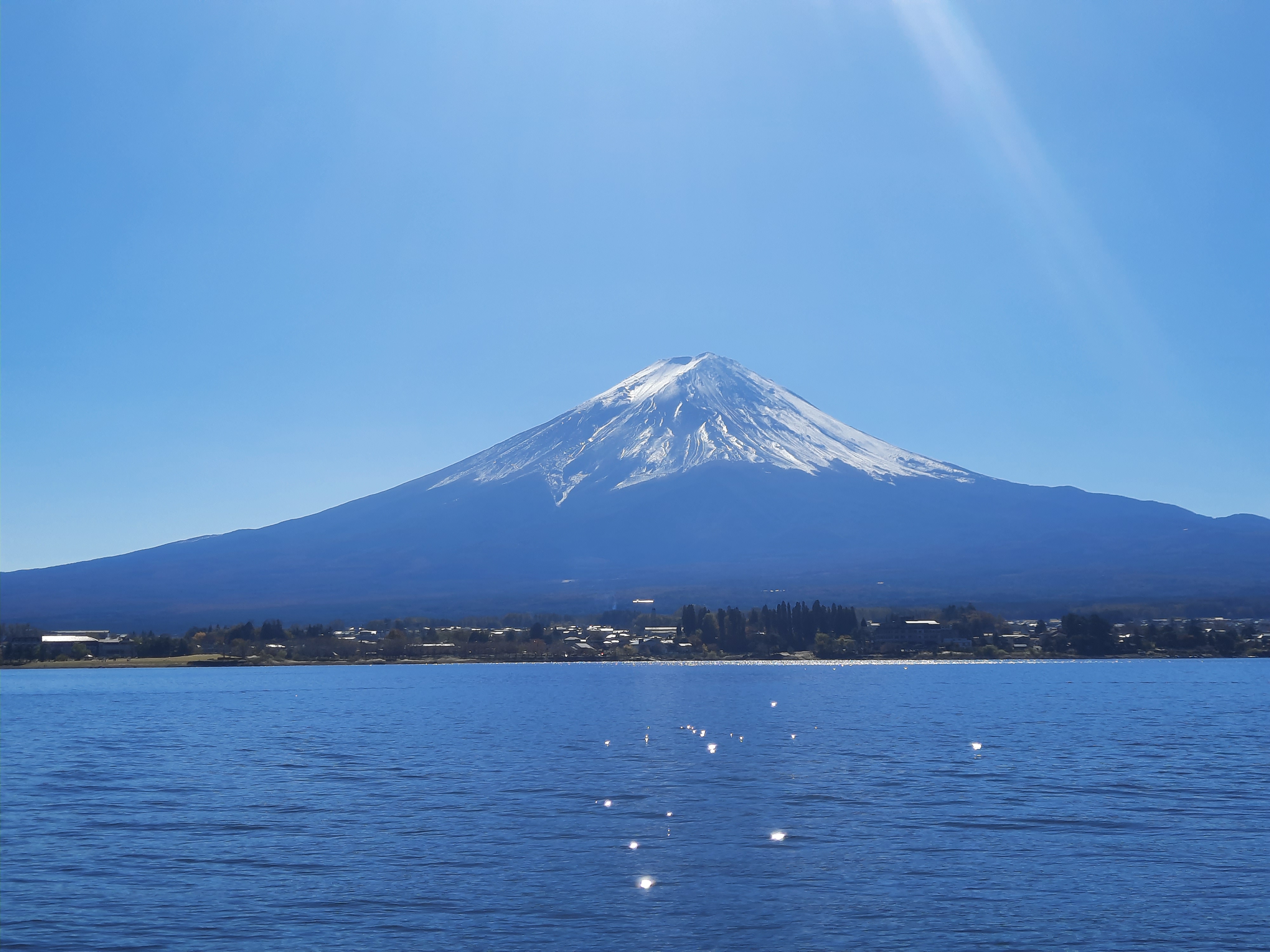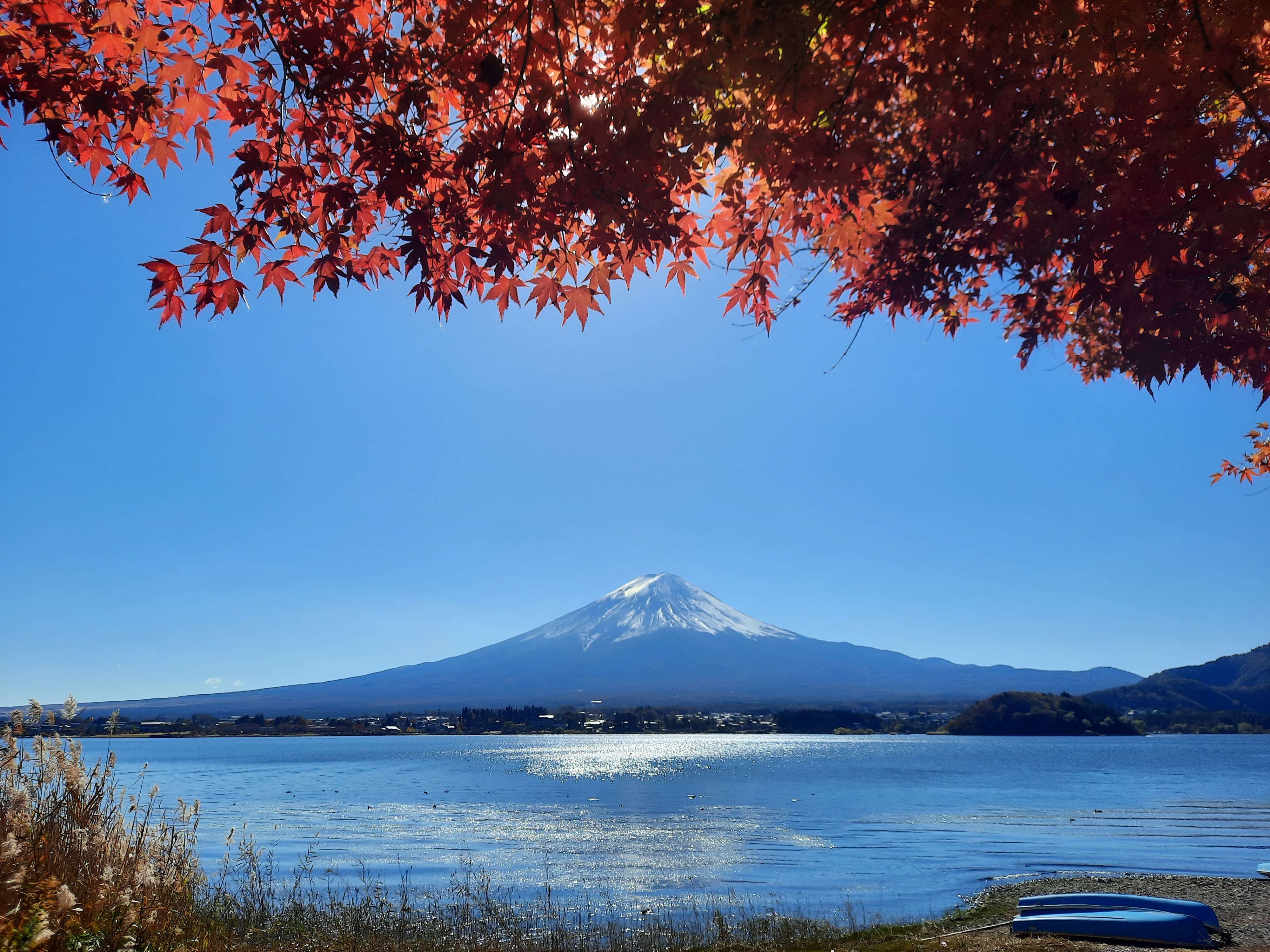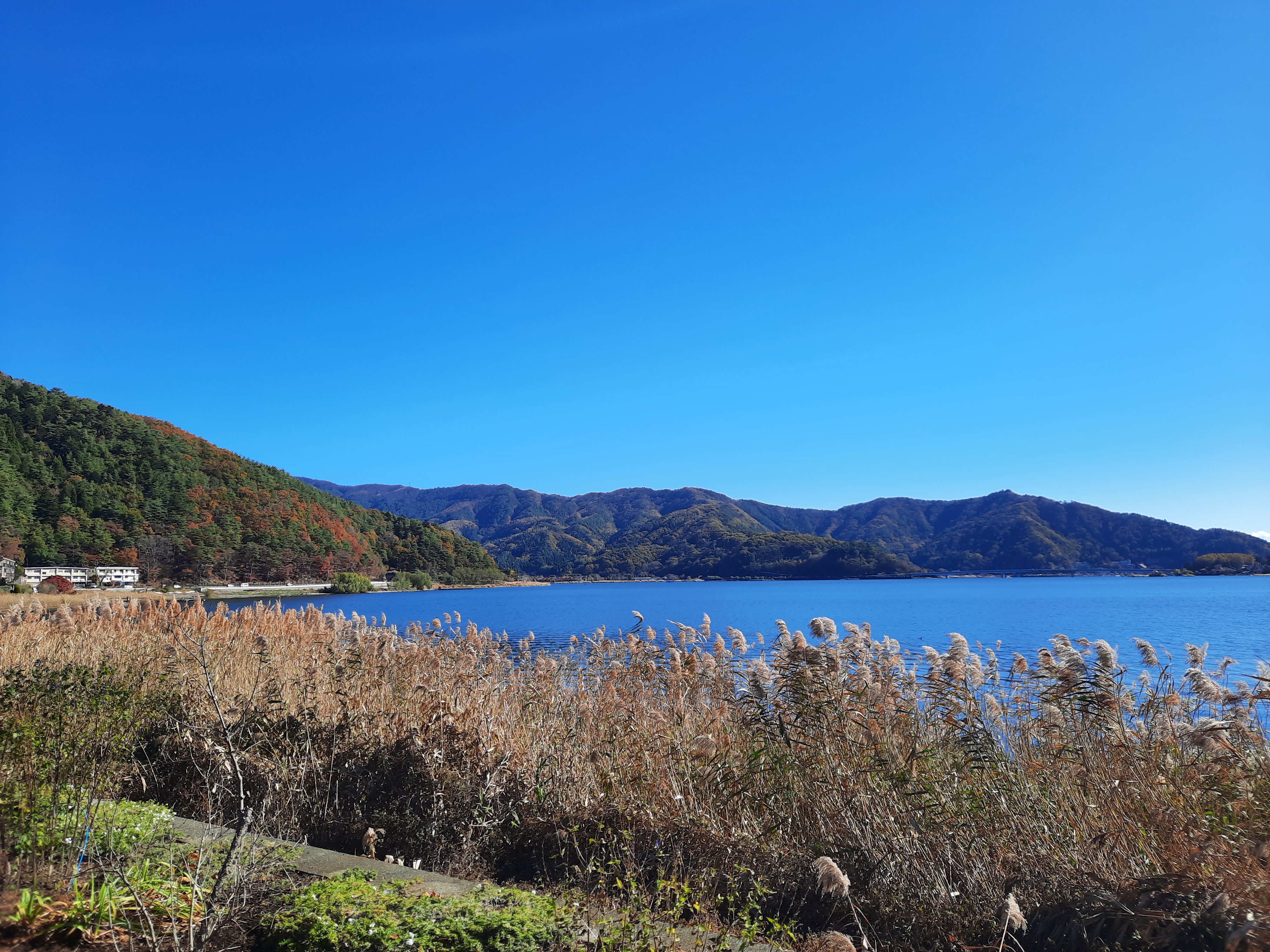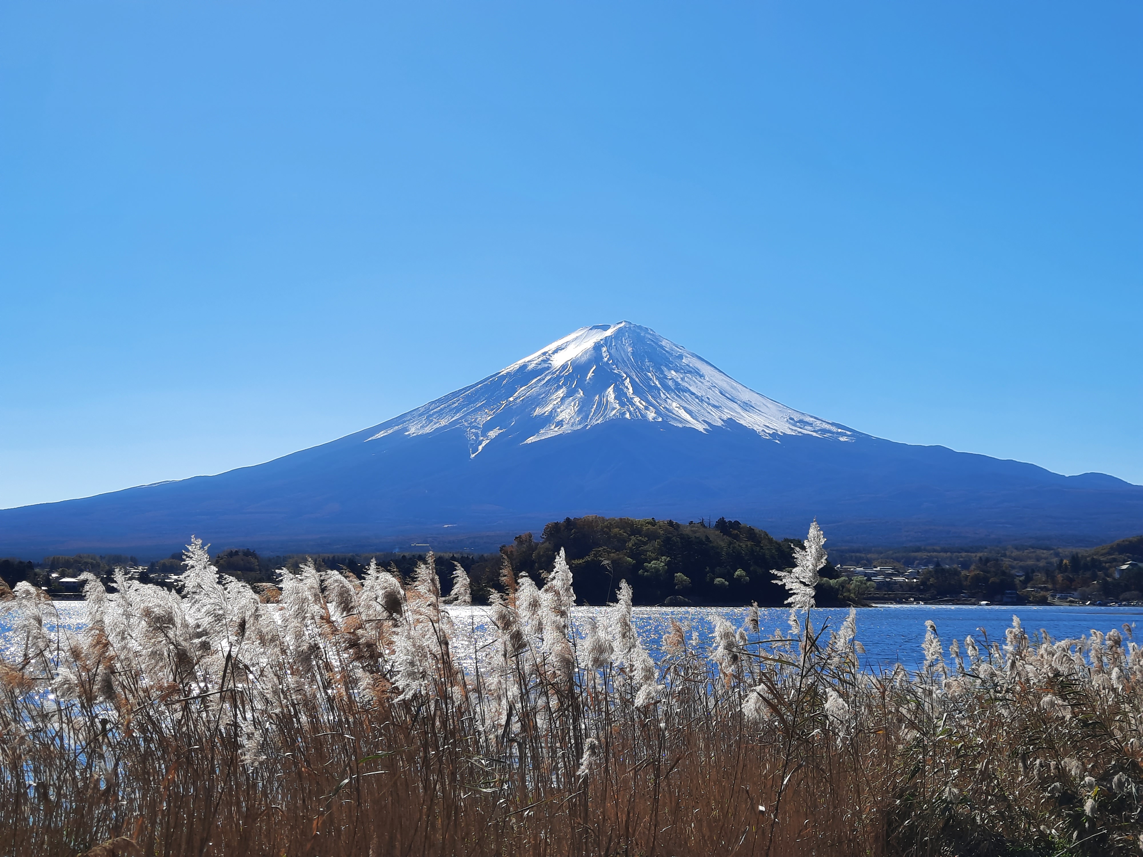 Am nächsten Tag fahren wir mit dem Bus an den Kawaguchi-See im Nachbarort. Der Kawaguchi-See ist der Größte von fünf Seen in unmittelbarer Umgebung des Fuji und bietet an jeder Ecke der Nordseite fantastische Aussichten auf den Fuji. Wir fahren bis zur Endstation der Buslinie am Oishi-Park und laufen danach am Seeufer entlang zurück in den Ort. Da das Wetter an diesem Tag perfekt ist, bleiben wir zwischendurch immer wieder stehn um den Fuji und die Aussicht über den See zu bewundern. An Fotospots mangelt es nicht und auch hier wird es nur wenige Meter neben den Haupt-Touristen-Spots schnell deutlich leerer und entspannt. Wer klein genug ist, kann auch mit Leihfahrrädern am See entlang fahren.