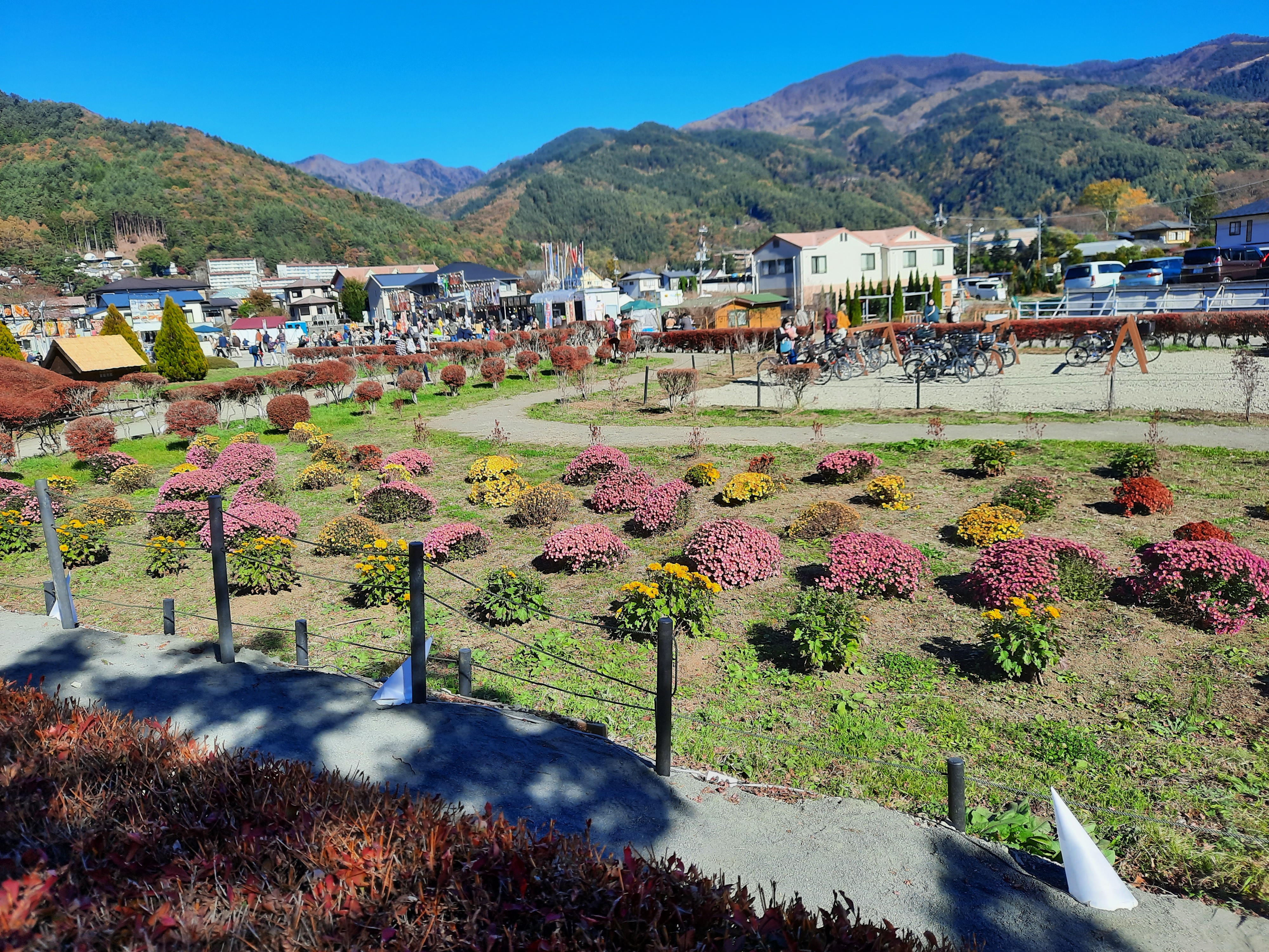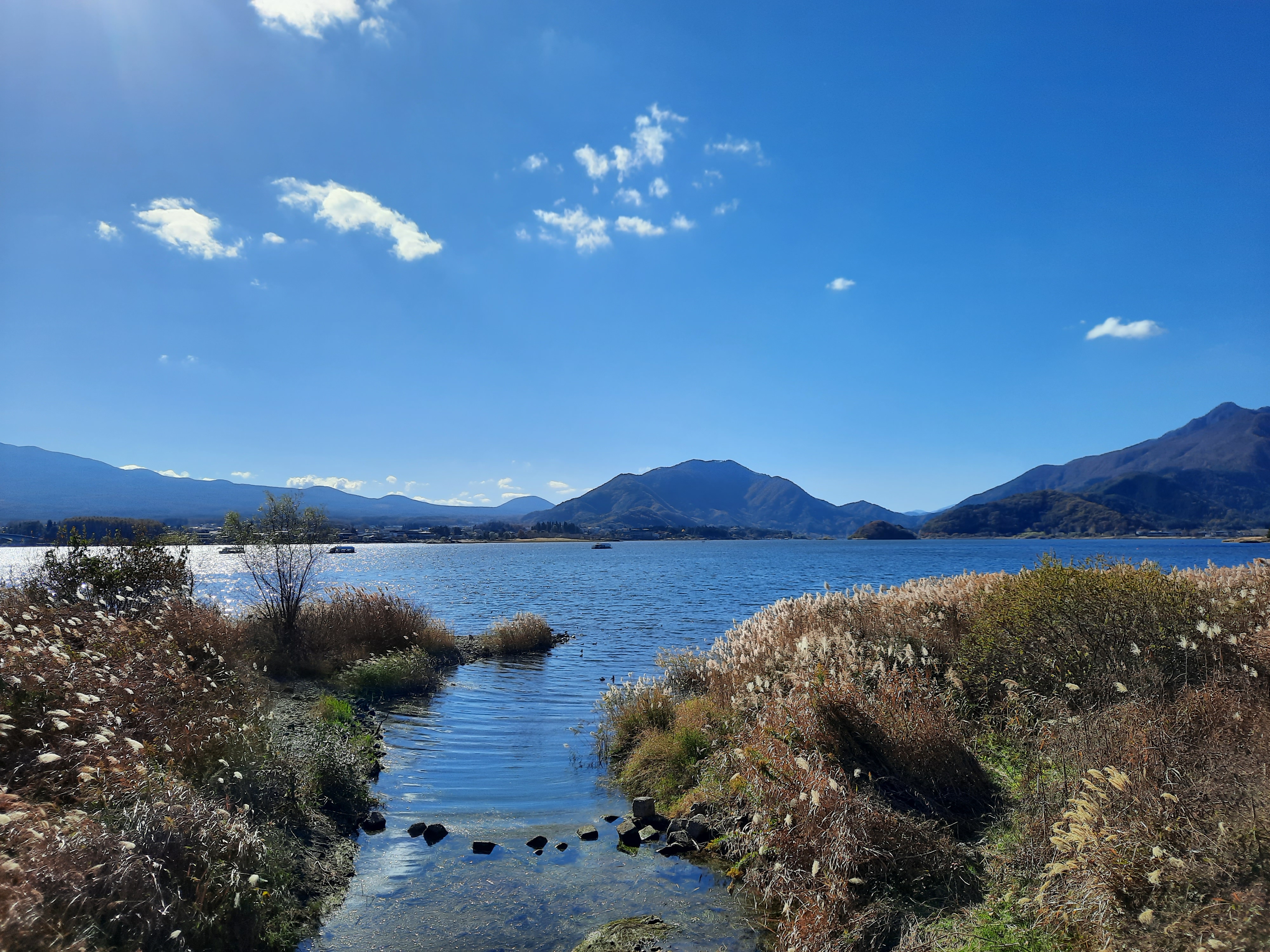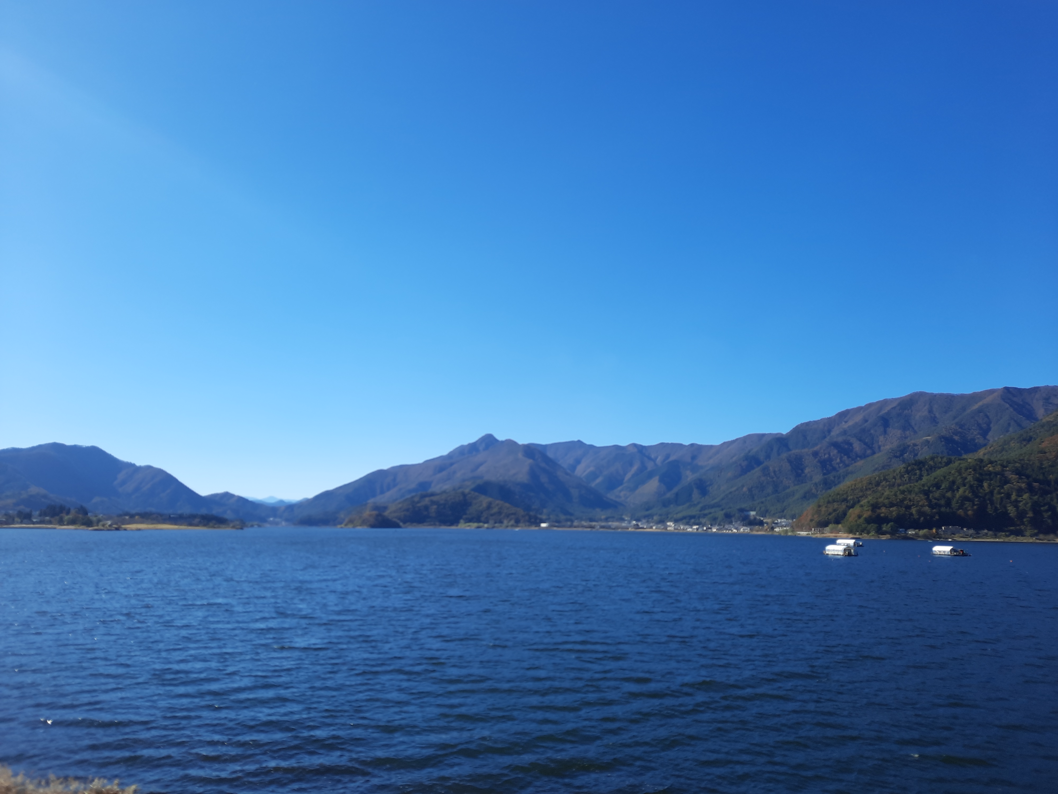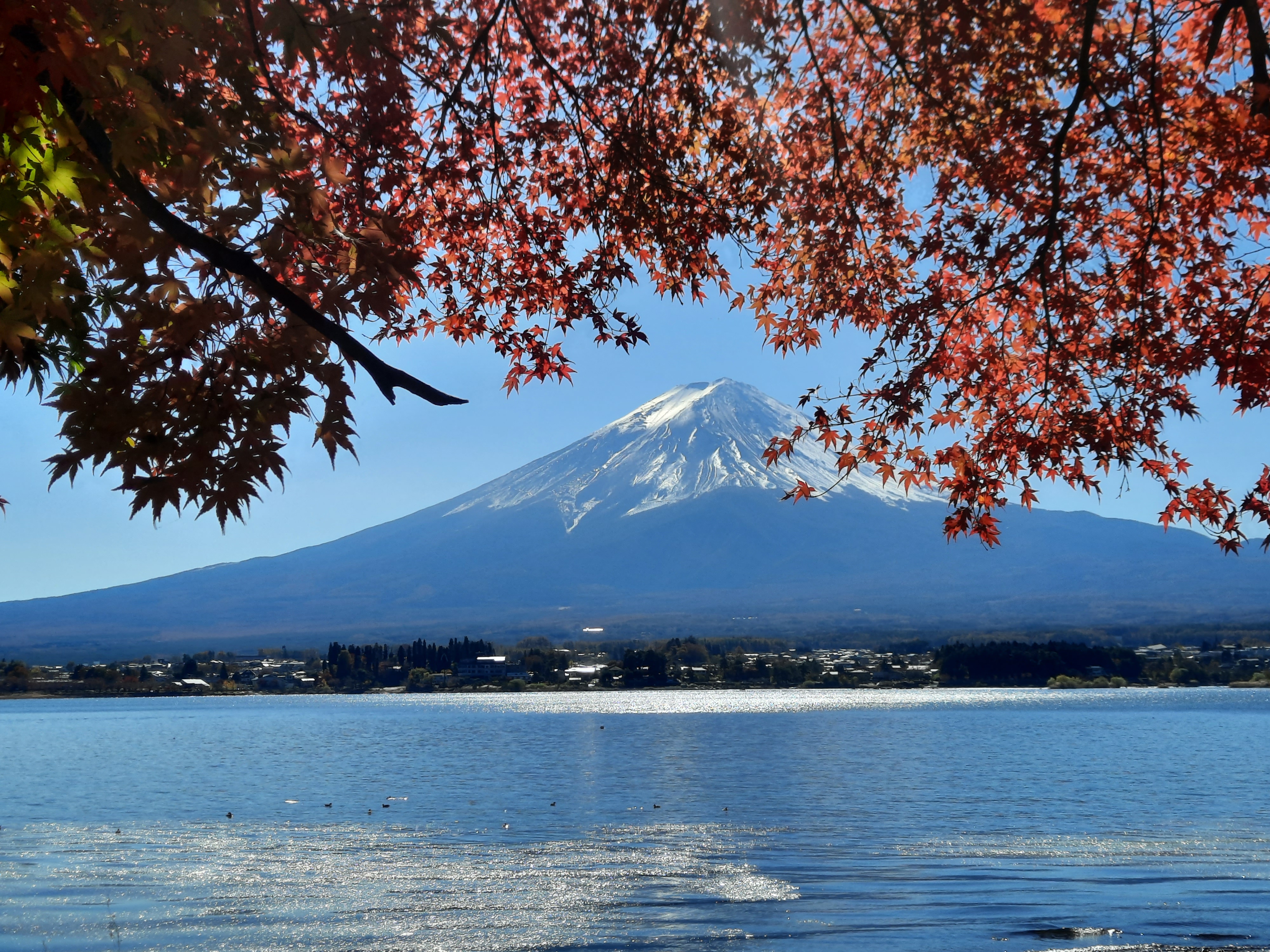Am nächsten Tag fahren wir mit dem Bus an den Kawaguchi-See im Nachbarort. Der Kawaguchi-See ist der Größte von fünf Seen in unmittelbarer Umgebung des Fuji und bietet an jeder Ecke der Nordseite fantastische Aussichten auf den Fuji. Wir fahren bis zur Endstation der Buslinie am Oishi-Park und laufen danach am Seeufer entlang zurück in den Ort. Da das Wetter an diesem Tag perfekt ist, bleiben wir zwischendurch immer wieder stehn um den Fuji und die Aussicht über den See zu bewundern. An Fotospots mangelt es nicht und auch hier wird es nur wenige Meter neben den Haupt-Touristen-Spots schnell deutlich leerer und entspannt. Wer klein genug ist, kann auch mit Leihfahrrädern am See entlang fahren.