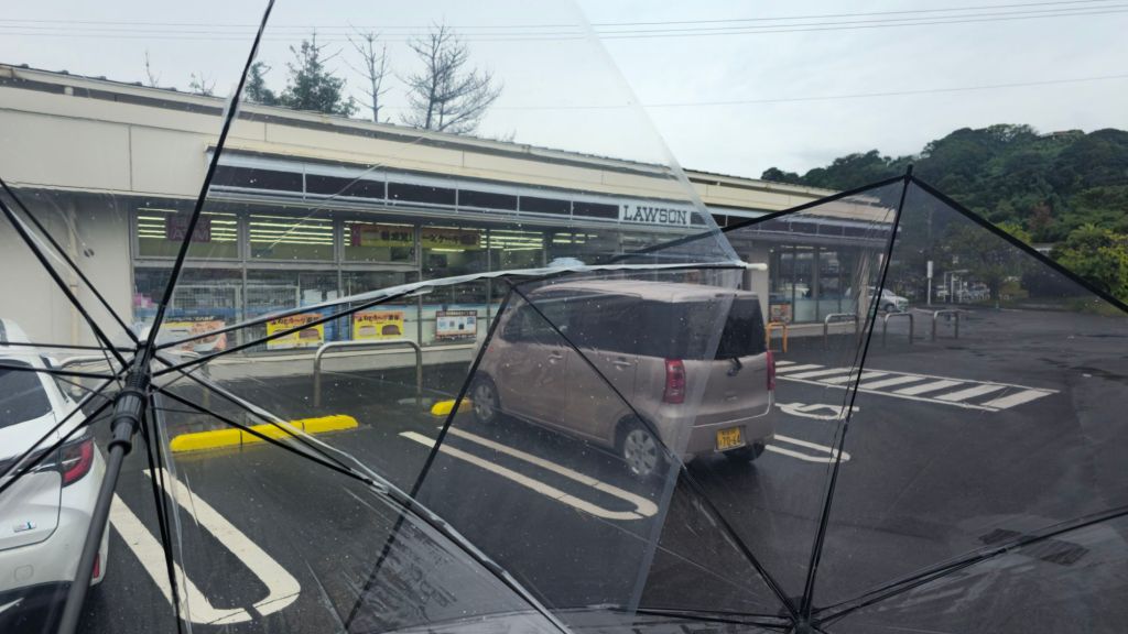 Ok, die Entscheidung, den wertvollen Platz im Koffer nicht für Regenschirme zu verschwenden, würde ich jederzeit wieder verteidigen. Auch Nass. Es war ohnehin geplant den nächsten Konbini anzusteuern und uns mit Verpflegung für den Tag zu versorgen. Warum also nicht gleich zugreifen und den Rest des Weges etwas trockener gestalten.