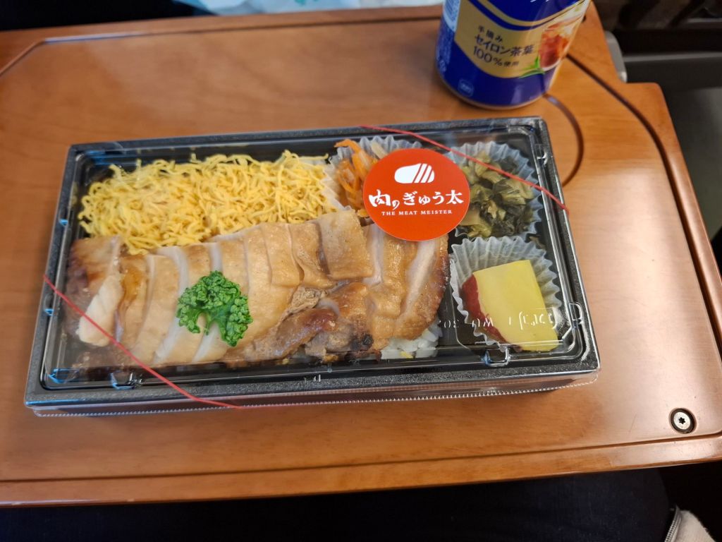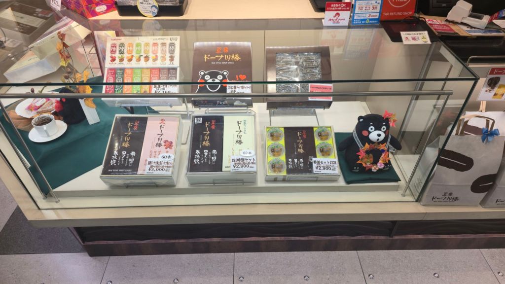 Auch wenn die Fahrt nach Kumamoto nicht einmal eine Stunde dauert, decken wir uns mit Eki-ben ein. Eine Wortkombination aus Eki, Bahnhof, und Bento, Lunchbox. Das gehört beim Reisen mit dem Shinkansen irgendwie dazu. Im Bahnhof war ein Season-Stand mit speziellen Bentos aufgebaut, an dem wir uns was ausgesucht haben.