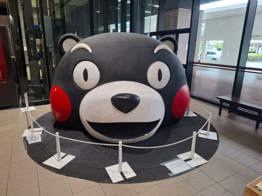 Bereits am Bahnhof werden wir von Kumamon, dem lokalen Maskottchen begrüßt. Der schwarze Bär ist in Japan allgegenwärtig und in seiner Heimat Kumamoto natürlich besonders präsent. Auch die aktuell problematische Situation mit den echten, wilden Bären im Norden Japans kann Kumamon’s Popularität nichts anhaben.