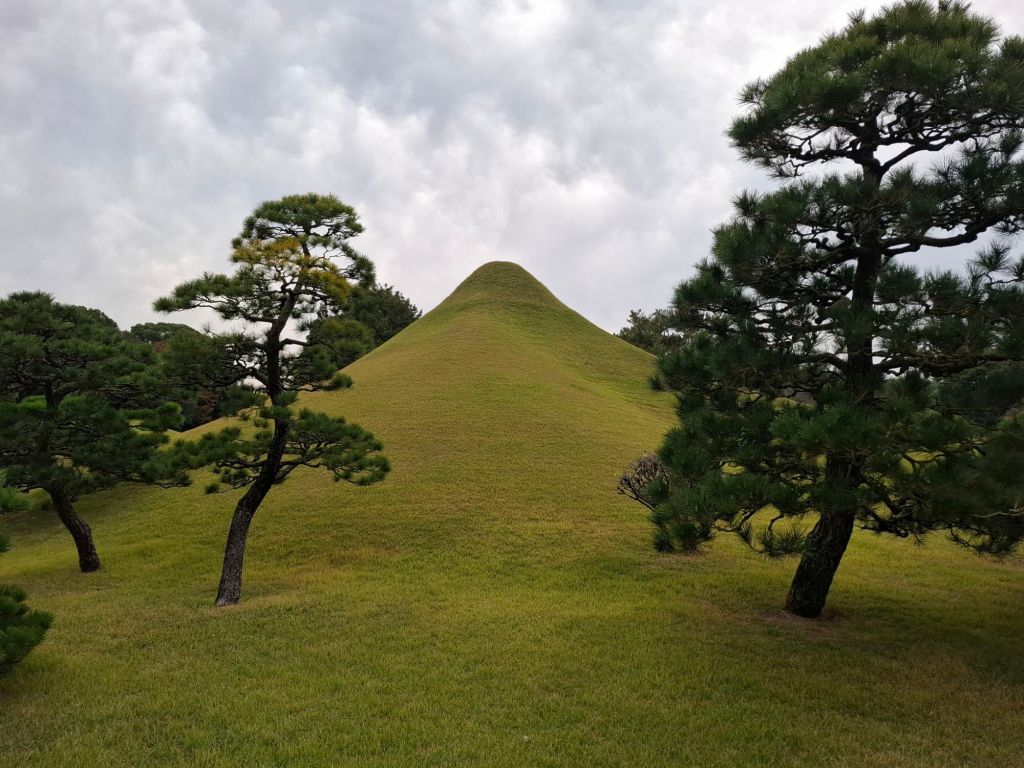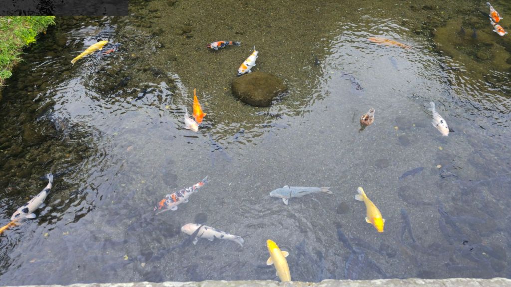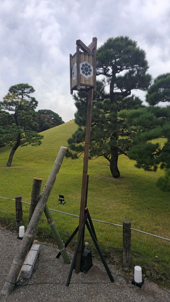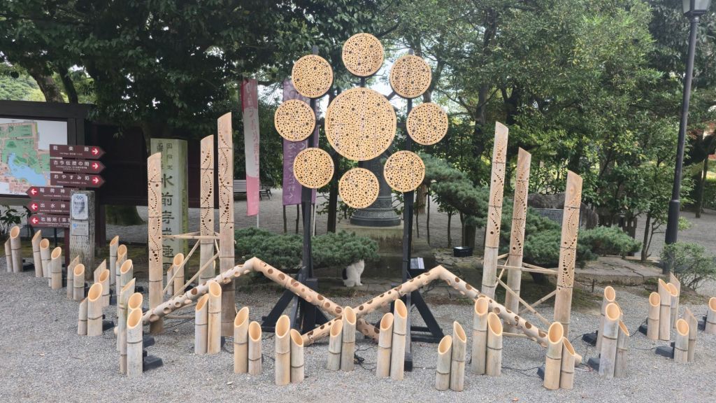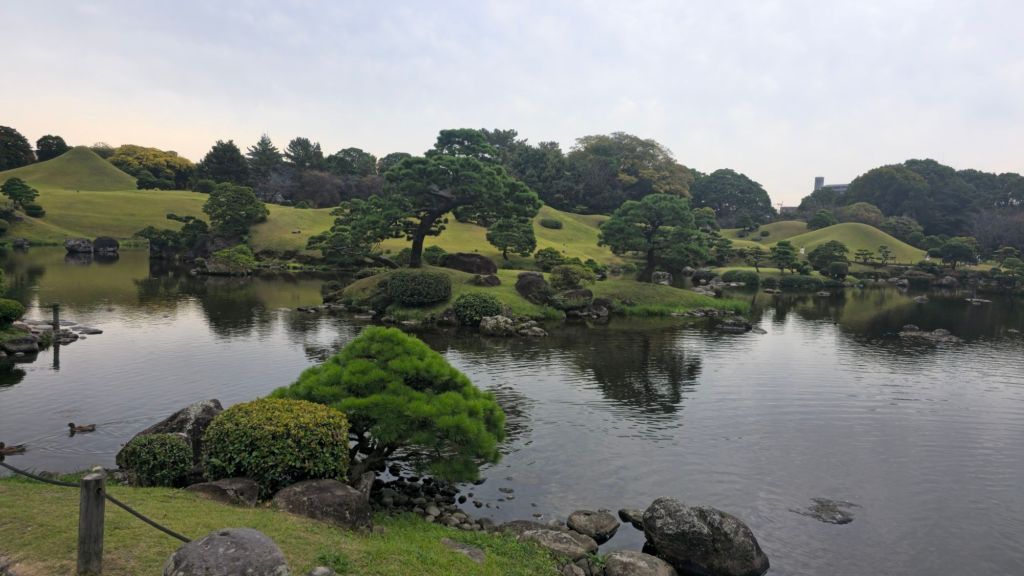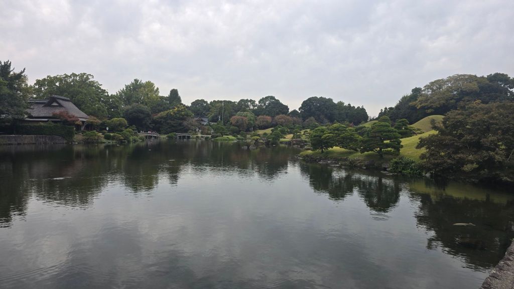 Nach dem Getümmel um die Burg brauchen wir erst einmal Ruhe. Also fahren wir mit der, zum Glück nicht zu vollen Straßenbahn Richtung 水前寺公園, den Suizenji-Park.