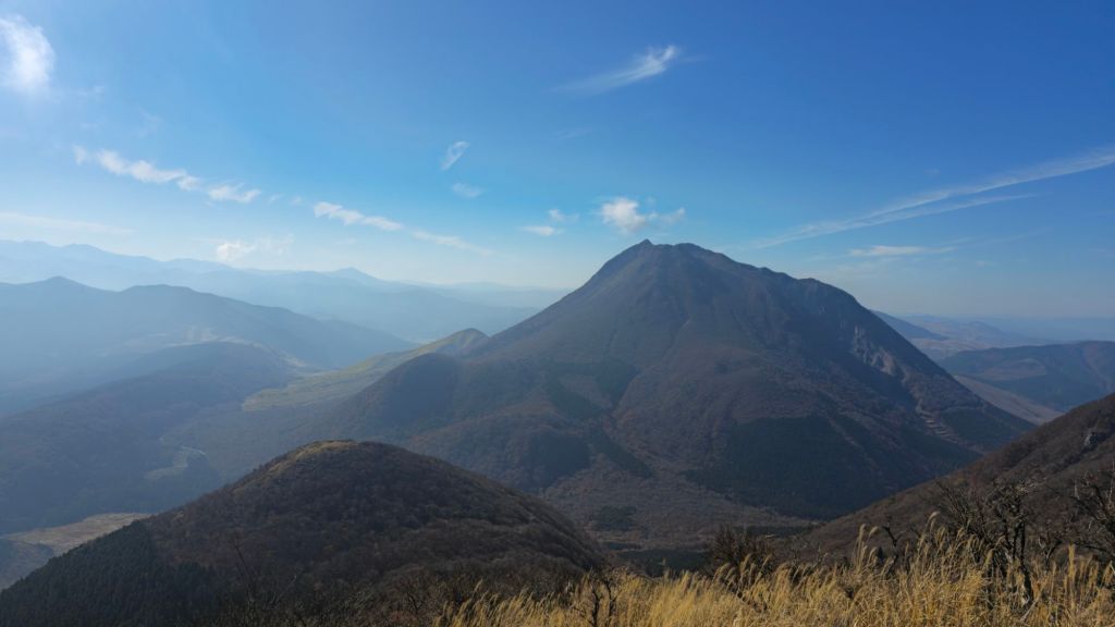 Der Berg Tsurumi ist 1.375 Meter hoch und der aktive Lavadom-Vulkan, dem Beppu seine Onsen verdankt.