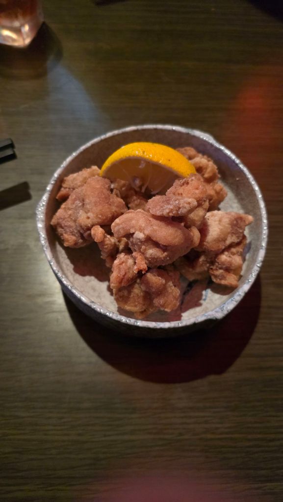 Sie gibt auf und wir setzen uns an einen der vier Tische. Und bekommen eine eng handschriftlich beschriebene Karte, welche dem Übersetzer erstaunlich schwer fiel. Da mussten wir jetzt durch! Da in Japan auch gerne Haut, Innereien und Knorpel als absolut essbar verkauft werden, halten wir uns an die sicheren Begriffe für Schenkel- und Brustfleisch mit verschiedenen Marinaden.