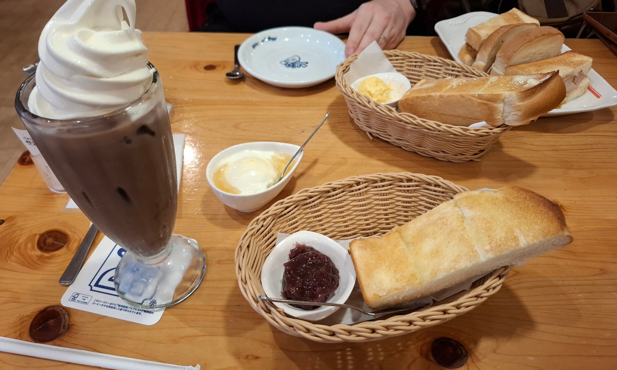 雨 Schon am Kanji "ame" (Regen) kann man es irgendwie erkennen, heute wird es nass. Nachdem wir schon ein paar graue Tage mit gelegentlich ein bisschen Regen auf Kyushu hatten, hat uns nun der letzten Ausläufer des Taifuns über Okinawa und Taiwan erreicht. Glücklicherweise liegt unser Frühstück nur einen Zebrastreifen weit entfernt, das "Komeda's Coffee". …